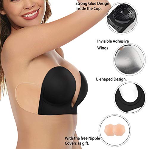Con su diseño de alas adhesivas e invisibles en ambos lados, siempre estará en su lugar. El escote en U profundo levanta tu pecho y crea un escote perfecto. Ideal para cualquier clase de vestidos, especialmente aquellos sin tirantes, corte bajo en la espalda o escotes profundos.